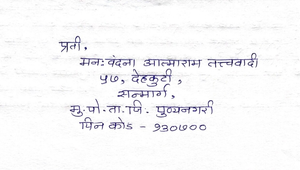 कधीपासून तुला पत्र लिहिण्याचे ठरवते, पण तुझा पत्ताच मिळत नव्हता. तू कधी एका ठिकाणी राहशील तर शपथ! सारखी भिरभिर चालते तुझी. बहिणाबाई म्हणतात तेच खरं,